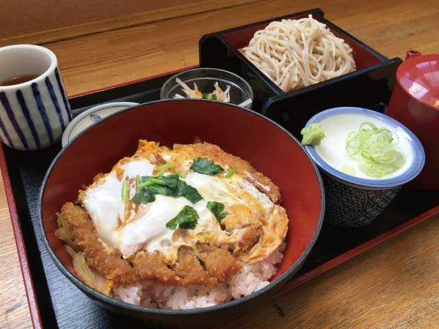 ツルっとした食べ飽きない食感の更科系のそばとホテルのシェフとして腕を磨いた店主が作る洋風なカツ丼のセット。味、量ともに満足の一品!