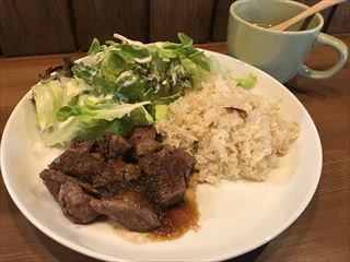 一口大のサイコロステーキとガーリックの効いたライスの相性が抜群です。
